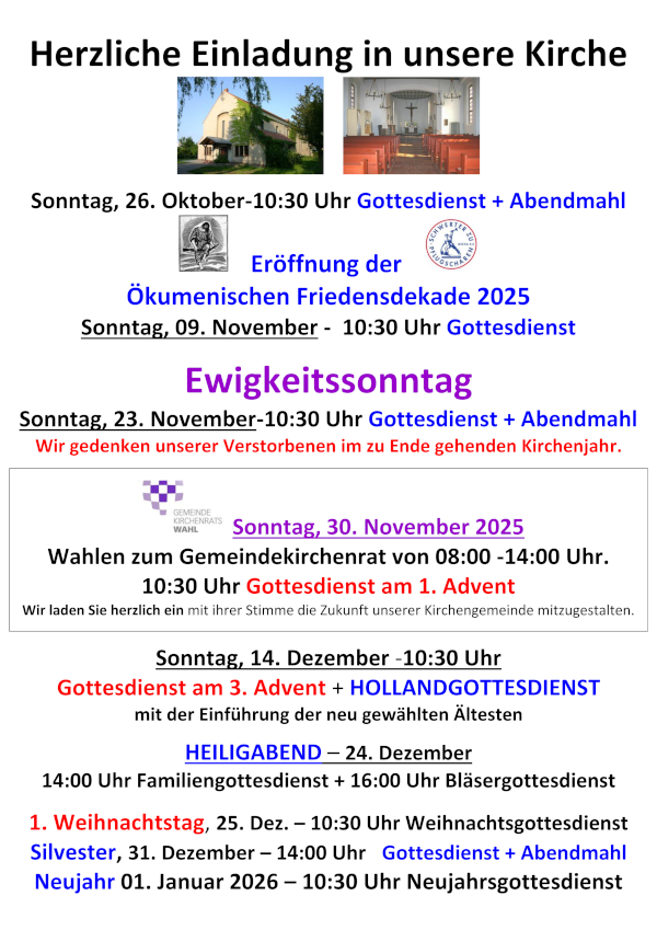 Die Gemeindekirchenratswahl ist vorbei. Dem neuen Gemeindekirchenrat gehören als reguläre ... Weiterlesen
